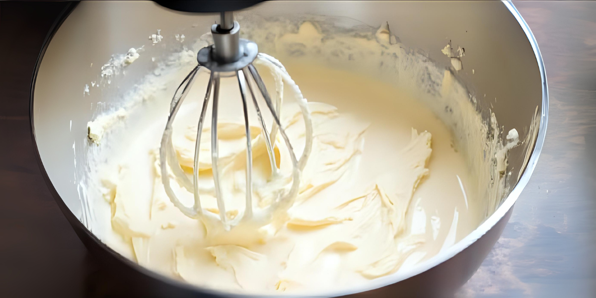 - Додайте сметану та продовжуйте збивати на низькій швидкості.